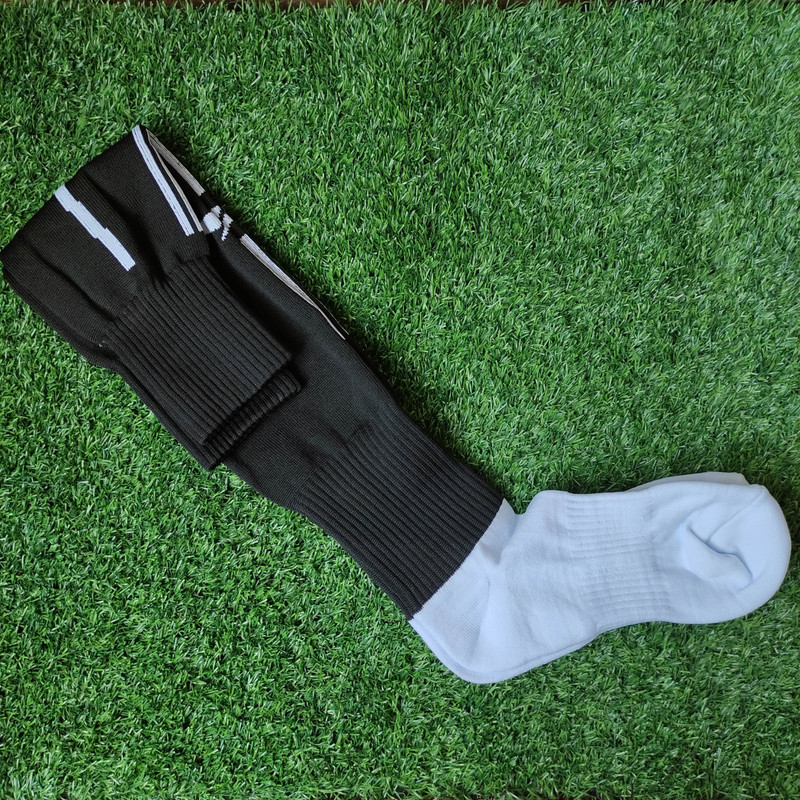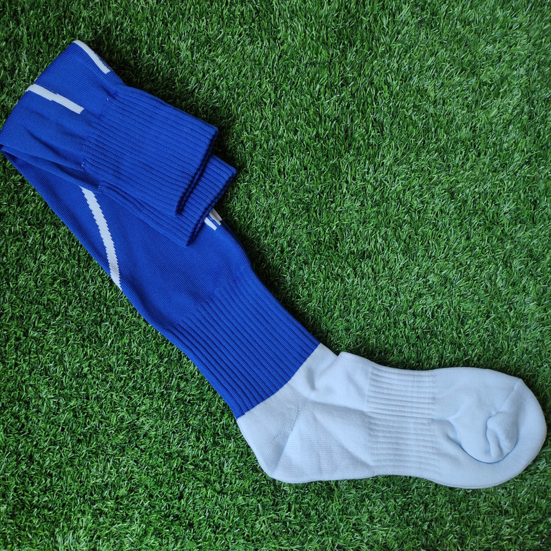 جوراب ورزشی ساق بلند فوتبالی مدل کف حوله ای مناسب رشته های فوتبال و فوتسال این جوراب در قسمت کف آن از داخل جهت جذب عرق و رطوبت پا و جلوگیری از لغزش از جنس حوله ای به کار برده شده است و نیز در قسمت ساق جوراب نیز جهت استحکام و تثبیت قلم بند ها از پارچه ی کشباف تولید شده است . توصیه می شود جهت ماندگاری بهتر جوراب آن را با آب دمای زیر 30 درجه سانتی گراد شستشو دهید و جهت خشک نمودن آن از قرار دادن بر روی وسایل گرمایشی و مقابل نور شدید آفتاب خود داری گردد.
